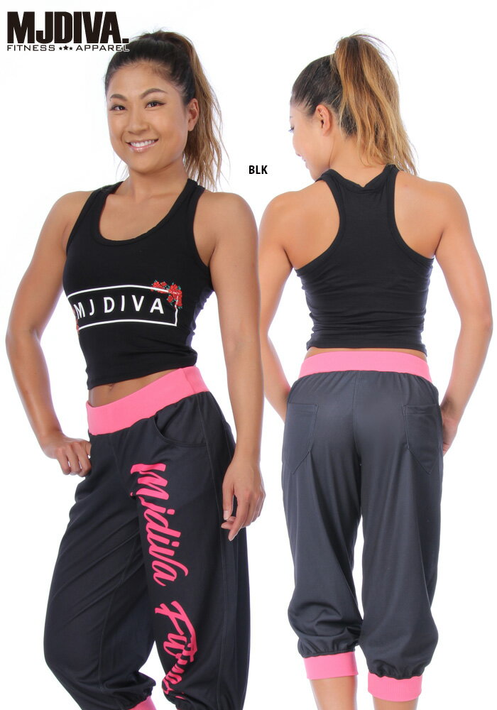 《MJDIVA◆ROSEボックスロゴストレッチショートタンク》 ストレッチの効いた生地でボディにFIT! タンクトップのシルエットはウェストが細く見えるように少しくびれをつくったMJDIVAオリジナルです。