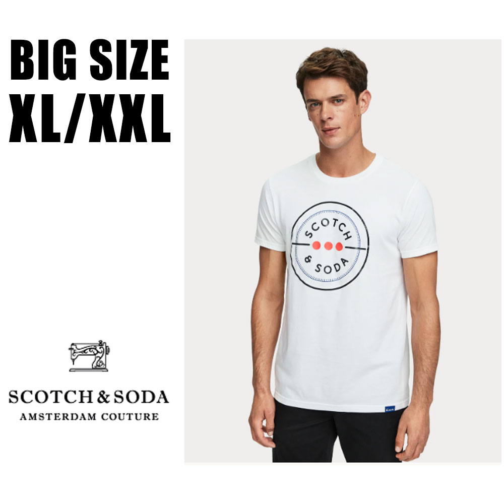【送料無料】 SCOTCH&SODA 大きいサイズ メンズ ブランド Tシャツ 半袖 XL XXL 2L 3L 白 ホワイト クルー ロゴ プリント 春 夏 リゾート 大人 30代 40代 50代 スコッチアンドソーダ 282-14417